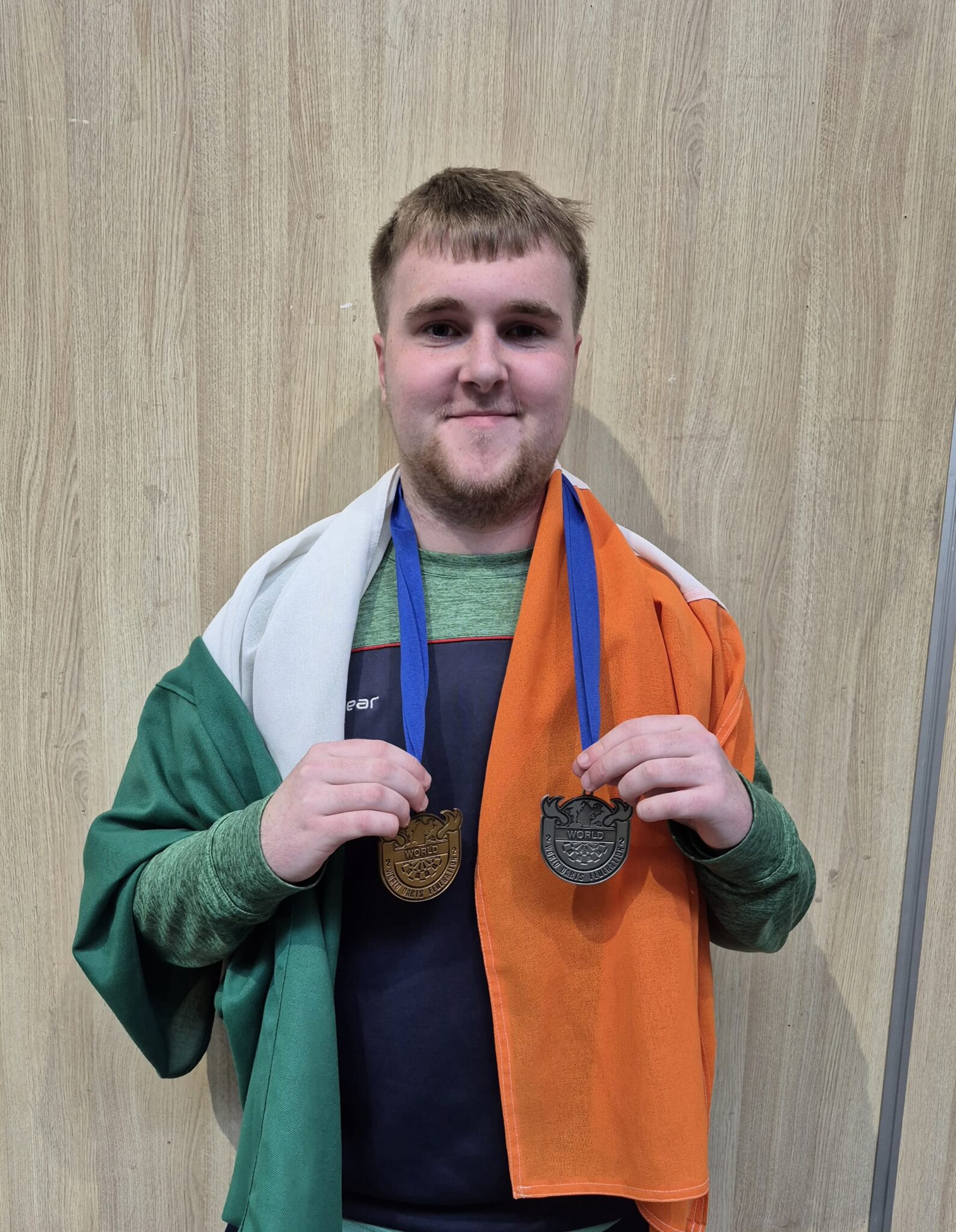 Sixth year student, Aidan O’ Hara, received a hero’s welcome as he returned to school on Wednesday, having won gold and silver at the World Darts Federation World Cup last week. Students, teachers and staff lined the yard and the corridors to clap and cheer as Aidan walked by with his medals – gold in the U18 doubles and silver in the singles event. Our principal Ms. Molloy warmly congratulated Aidan on his fantastic achievements on behalf of our entire school community.