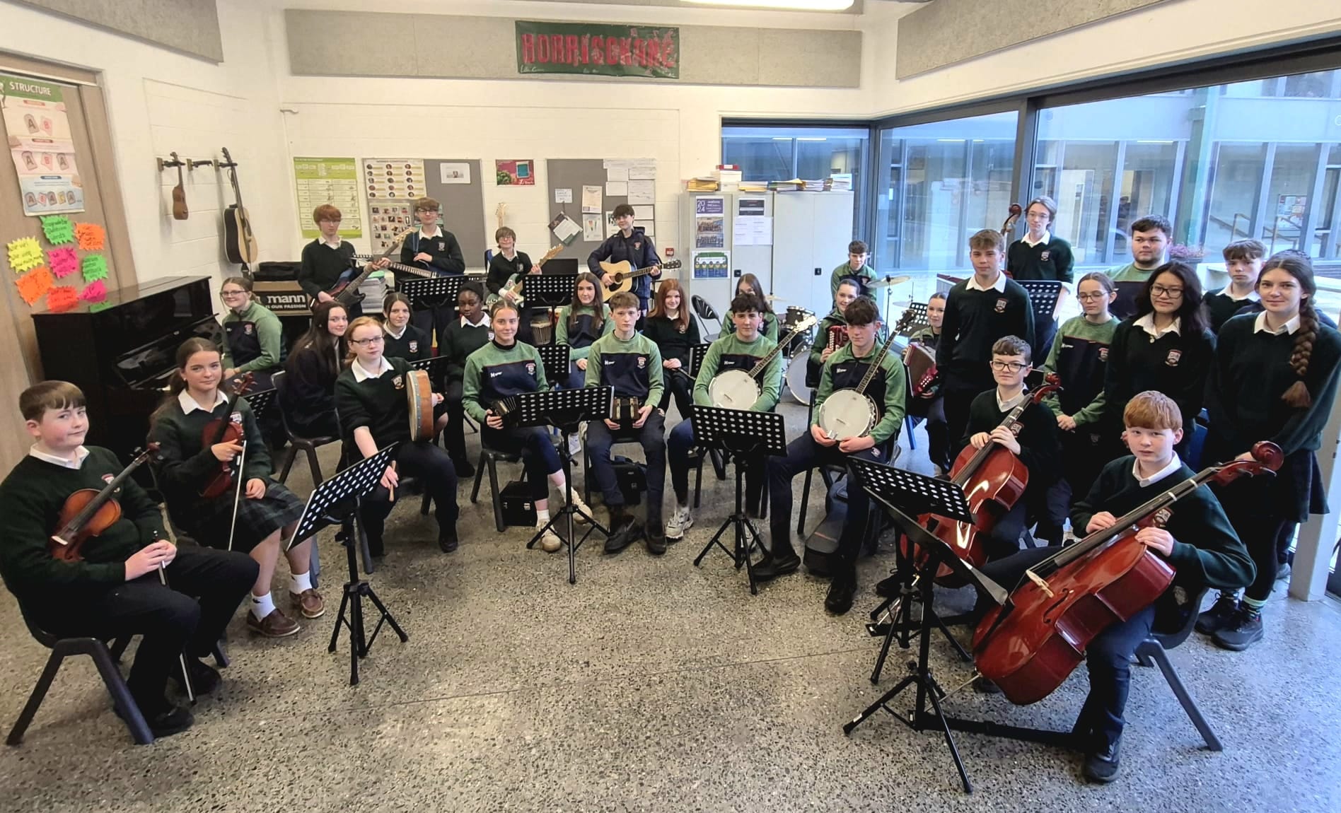 Borrisokane Community College proudly hosted the Tipperary ETB talent show on Thursday March 19th, with past pupil Ella Carey as MC. The school was represented by the  Traditional music group which performed ‘Tradfather’ by Limerick group Beoga and ‘Killeagh’ by Kingfisher.  Additionally, Ellen Kennedy and Emily Haase, both 6th year students, sang ‘Photograph’ by Ed Sheeran. Thank you to everyone who contributed to an enjoyable evening of entertainment.